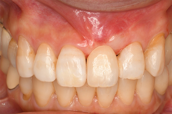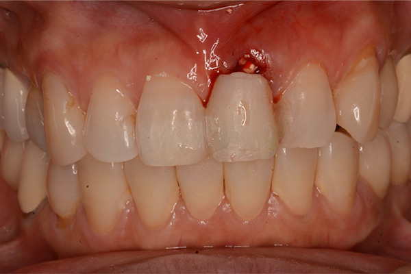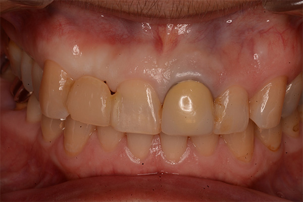 | 【治療内容】 | 歯根挺出(部分矯正)から抜歯 抜歯窩結合組織移植術後にジルコニアシングルブリッジ装着 |